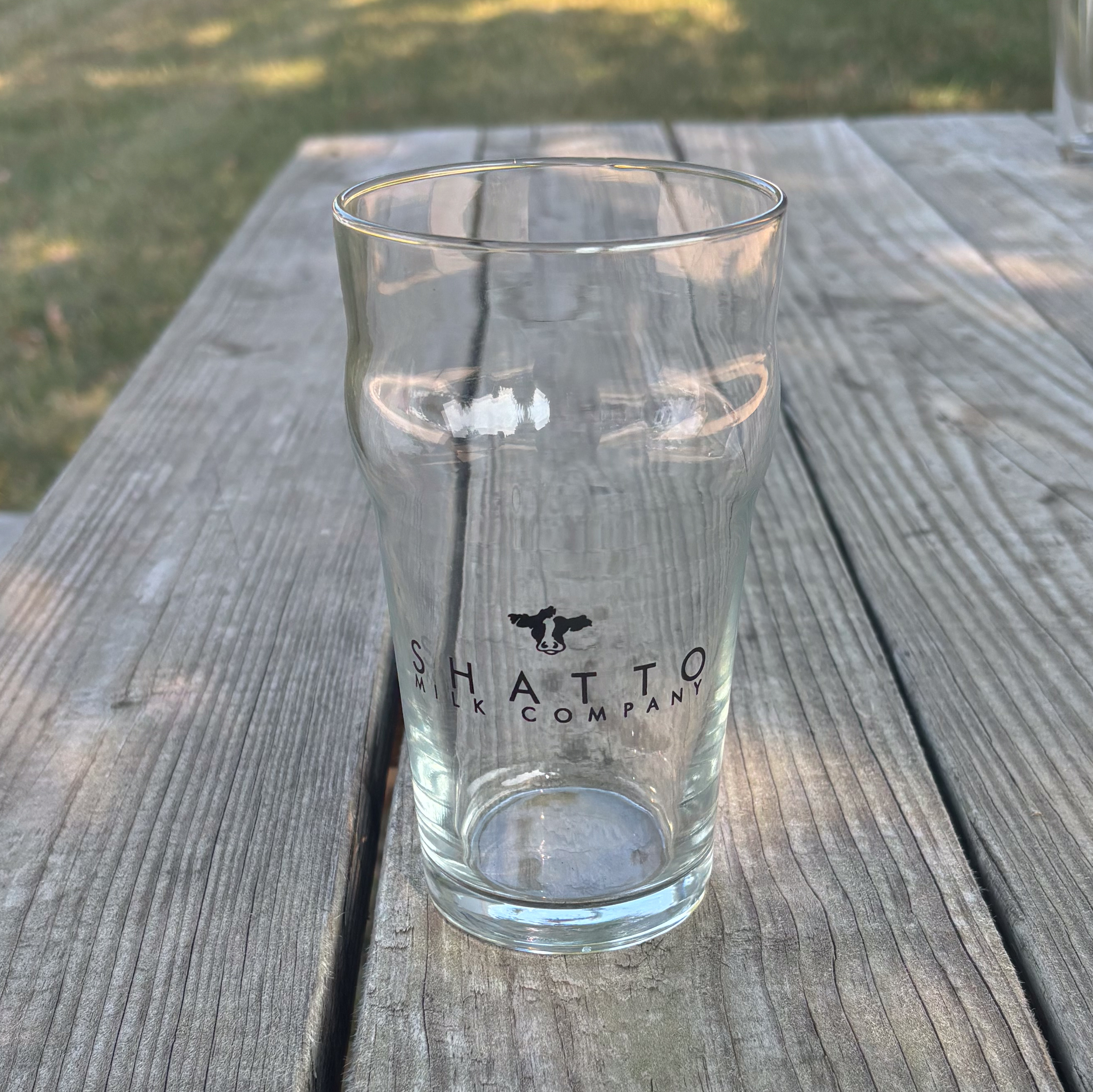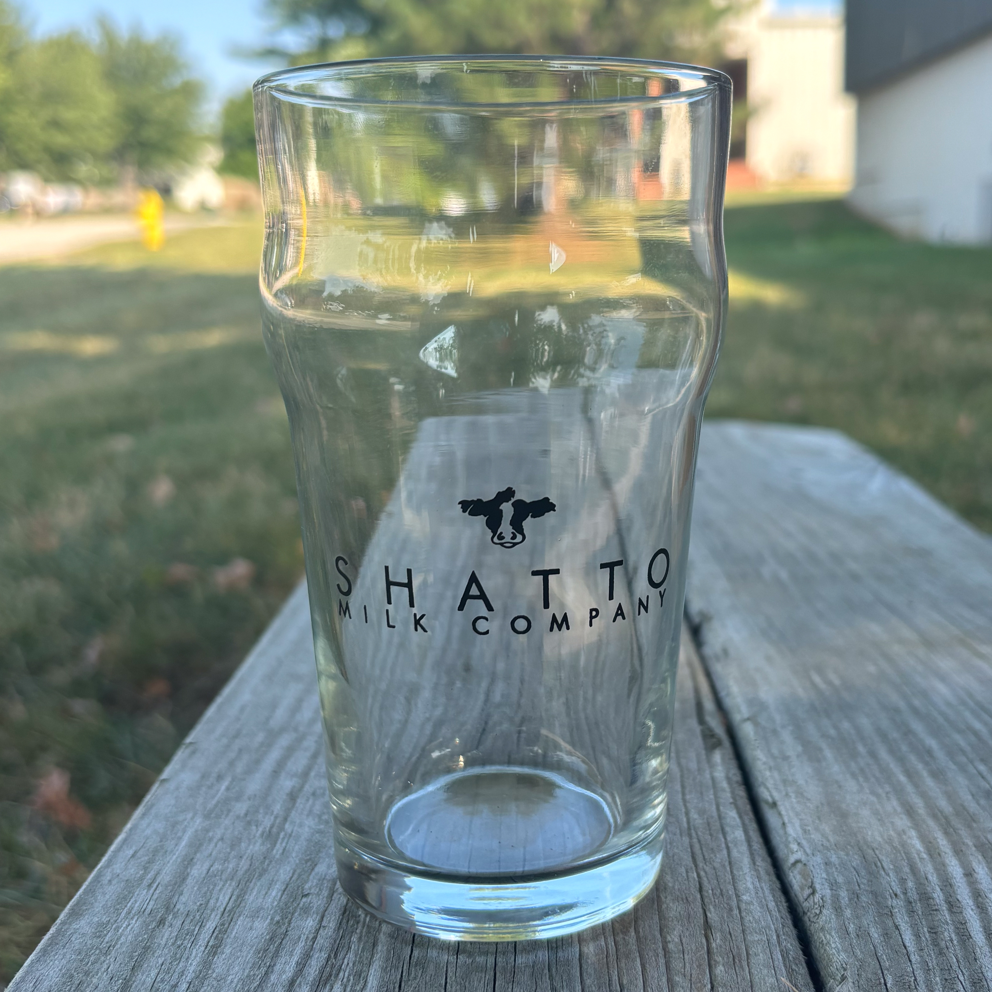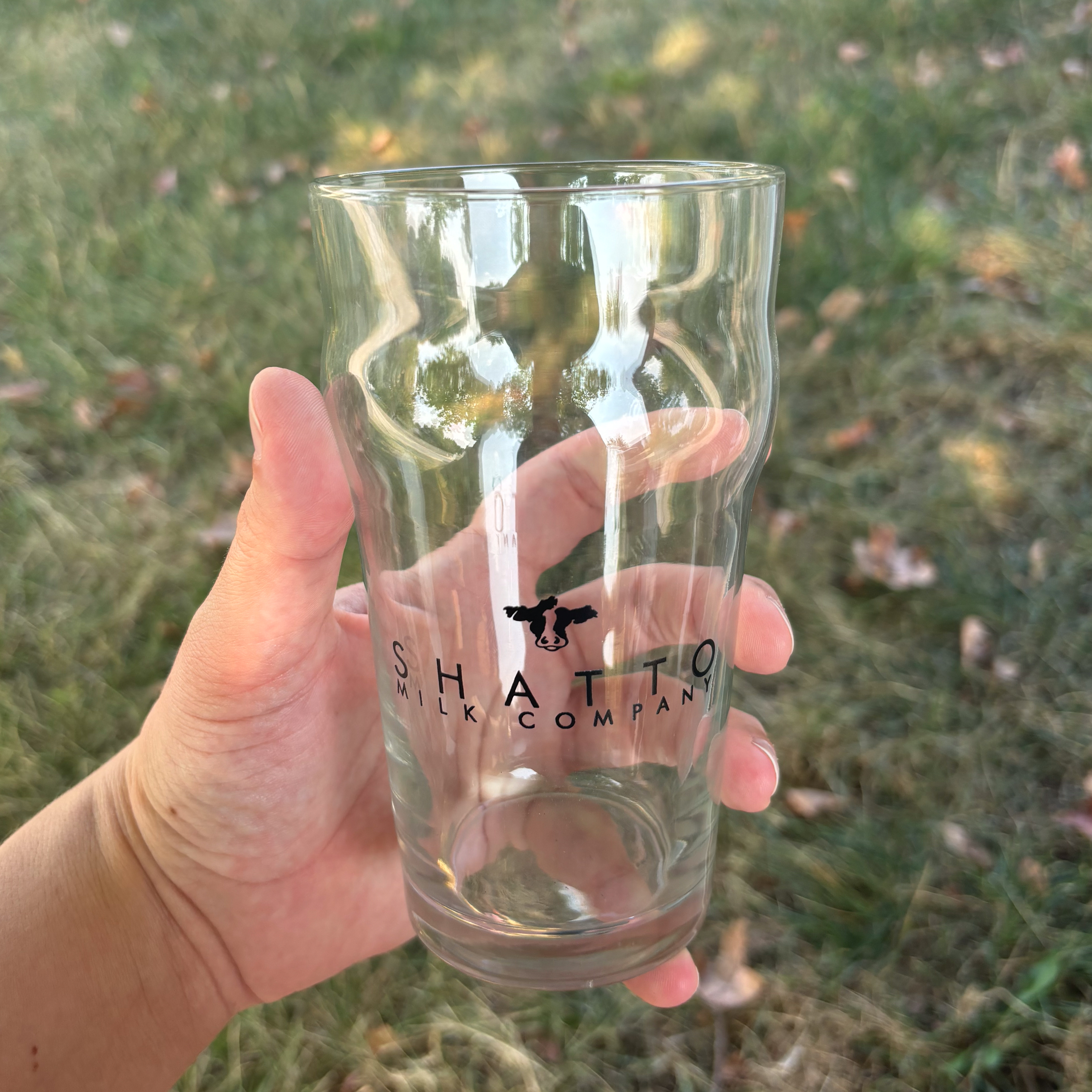 Spruce up your kitchen with our large diner-style glasses emblazoned with the Shatto cow logo!